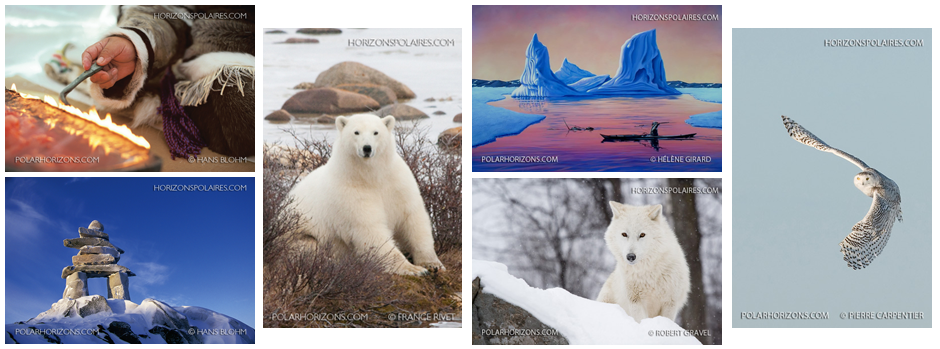 Dans la section CARTES ARTISTIQUES, vous pourrez choisir parmi plus de 225 images qui explorent une variété de thèmes reliés aux régions polaires et à la nature (flore, faune, paysages, ...).